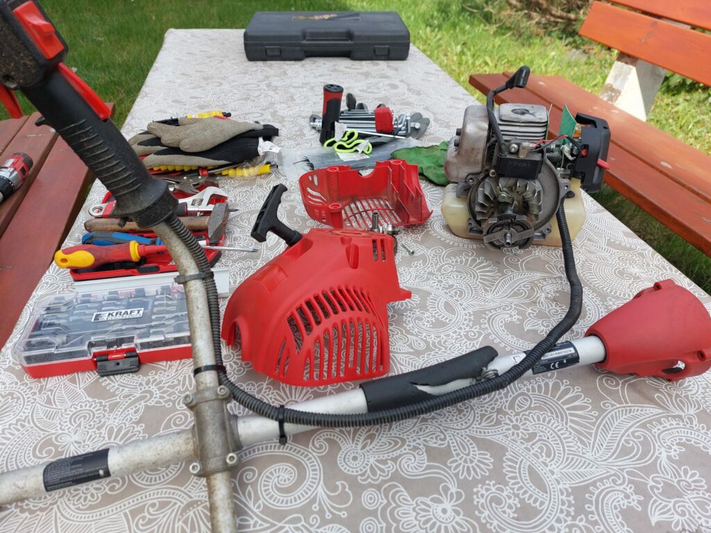 Nachdem das Gerät schon einmal einen erfolglosen Reparaturselbstversuch hinter sich hatte, kam es bei uns sozusagen zur zweiten Diagnose. Es wurde festgestellt, dass das Polrad nach dem Zusammenbau zu locker auf der Kurbelwelle saß und dadurch die Passfeder deformiert wurde. Im Team haben wir es auseinandergebaut, den Sitz der Passfeder korrigiert und die Fehlstellen mit Zweikomponentenkleber wieder aufgefüllt. Nach einer Trocknungspause schnurrte die gute Motorsense wieder und sie konnte funktionstüchtig wieder übergeben werden.