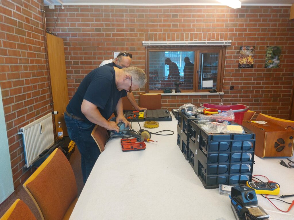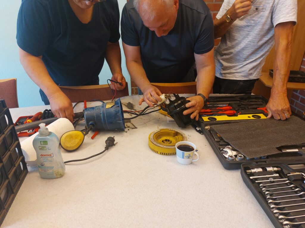 Mit reduzierter personeller Ausstattung gingen wir in unsere 4. ReparierBAR am 05.07.25, zu der sich im Vorfeld schon einige „Patienten“ angemeldet haben. Schnell füllte sich deshalb auch unser Café-Bereich und etwas Geduld war gefragt, denn schon eine viertel Stunde nach Öffnung warteten 14 Gäste. Eins nach dem anderen arbeiteten wir ab, einiges haben wir auf einen neuen Termin verschieben müssen. Gute Gespräche bei Kaffee und Kuchen füllten die Wartezeit aber gut aus und so manche Bekanntschaft wird gemacht.