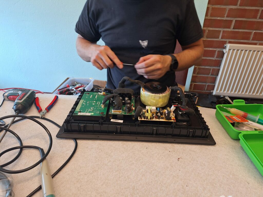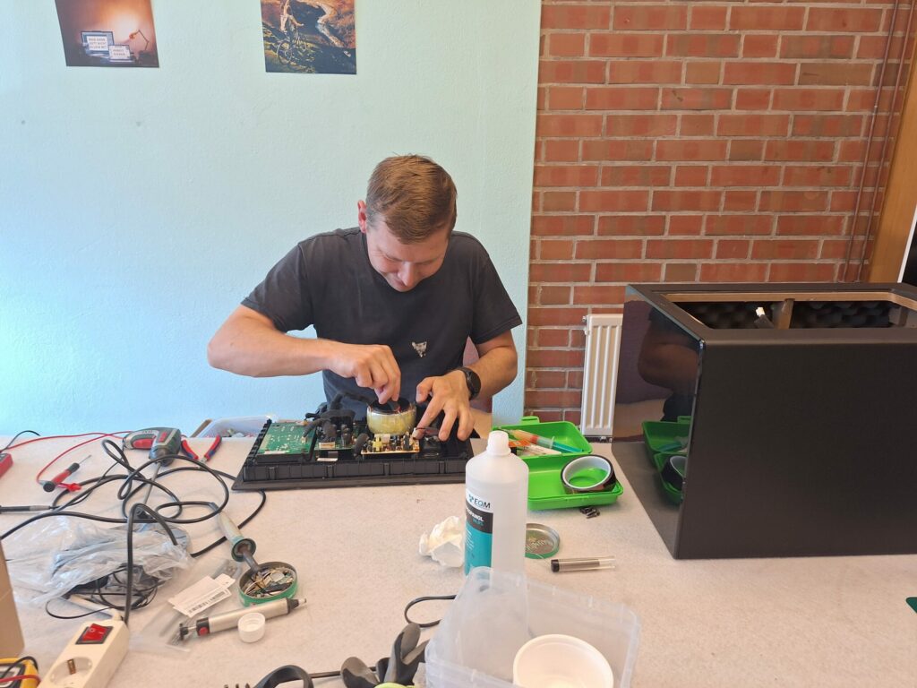 7. Subwoofer (Lautsprecher) – unser Gast meldete sich schon im Vorfeld an. Eigentlich hätten wir gar nicht gedacht, dass die Lösung so einfach ist. Auch hier war es ein defekter Kondensator und das gute Stück lief wieder. Kleine Ursache – große Wirkung.