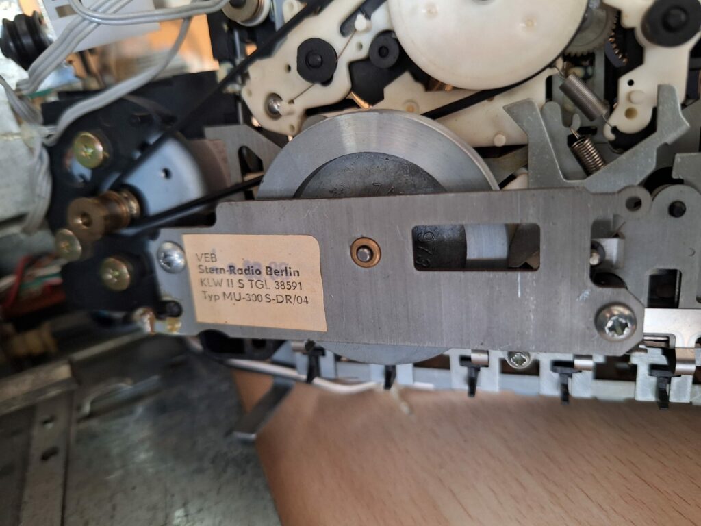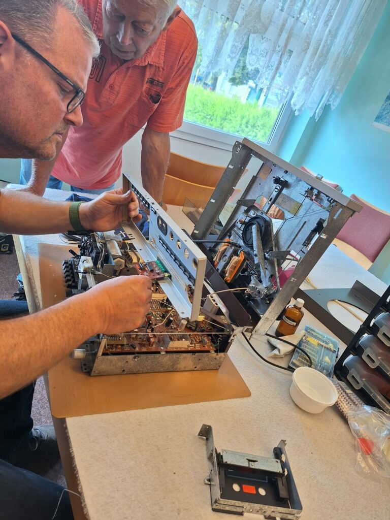 2. Radio Kassettenteil – der Plattenspieler ging mehr, da die Antriebsriemen und die Tonabnehmernadel defekt waren. Dazu ging das Radio nicht mehr „auf Empfang“. Nachdem wir Ersatzteile besorgt und eingebaut haben, das Gerät einer Komplettreinigung unterzogen und die beweglichen Teile geschmiert haben, freuen wir uns sehr, dass es wieder stabil läuft und deutlich besser klingt, als manches andere aus neuerer Zeit. Beim Radioempfangsteil sorgen neue Kondensatoren jetzt wieder für Empfang.